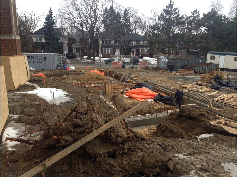 It might look a bit like a barnyard around the Allenby construction site lately due to the bales of straw that have been used as insulation for the concrete work. It certainly has been a challenge for the team to have to deal with the severe cold and then the occasional warmer day. Most of the concrete forms have come down and the foundation is clearly visible. We are beginning to see some bare asphalt in the school yard as well, making us all optimistic that spring will come and stay.