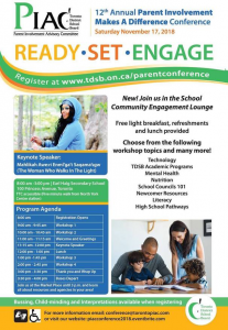 Register for the 12th Annual PIAC Conference By APA on October 26, 2018 in TDSB News Registration is now open! PIAC’s 12th Annual Parent Conference is coming to Earl Haig S.S. on Saturday, November 17. Registration is free through EventBrite. PIAC