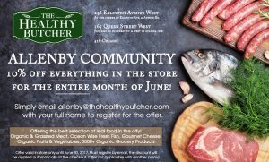 Our thanks to a few of the platinum level sponsors for Fun Fair 2017. In addition to their sponsorship The Healthy Butcher is offering the Allenby Community 10% off everything in the store for the month of June. See below for more details.