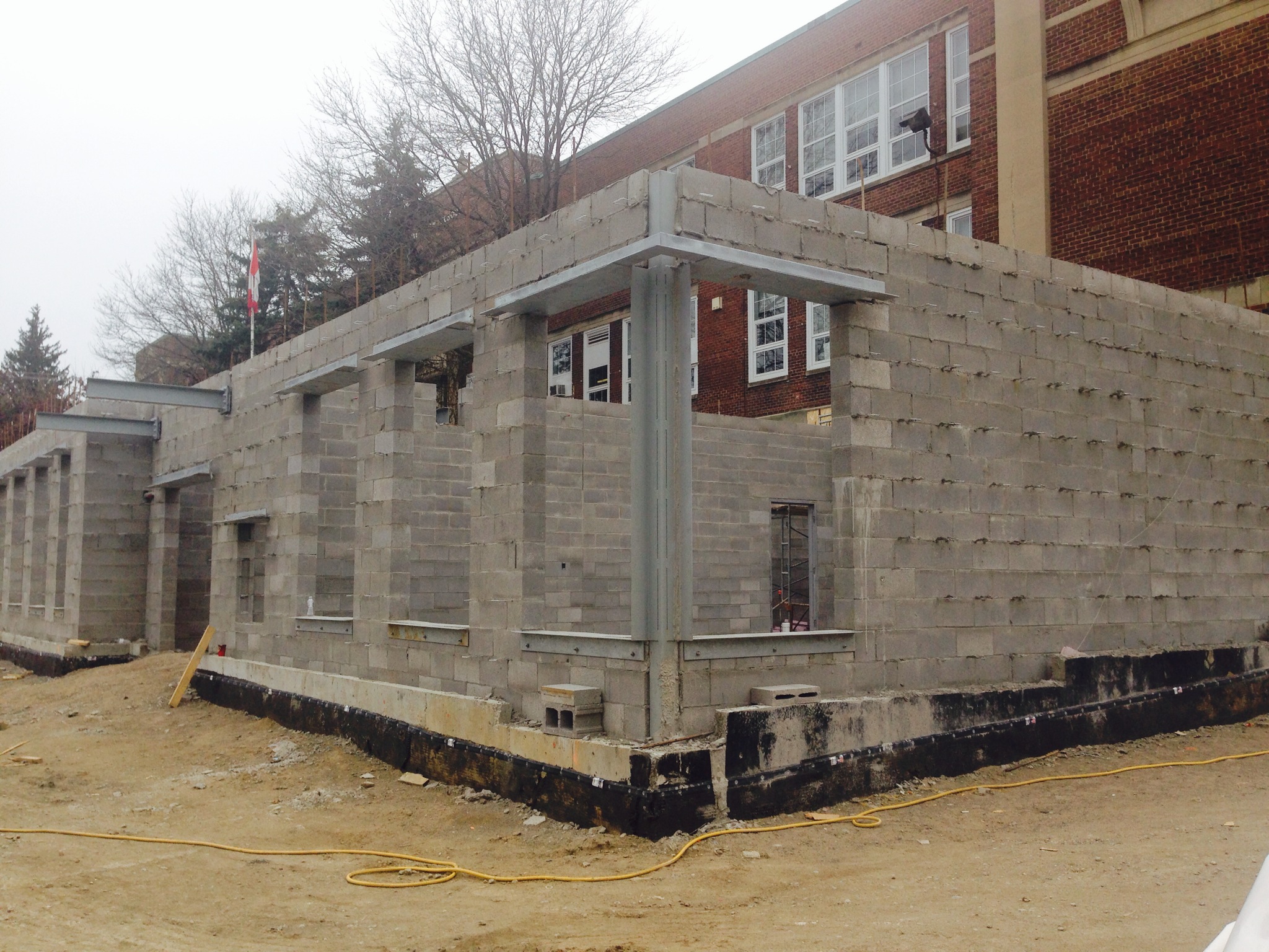 Progress is slow but steady on the outside of the school. The construction team will soon begin indoor projects over some weekends to retrofit four existing classrooms with a student washroom and sink to serve as FDK (Full Day Kindergarten) rooms in September.