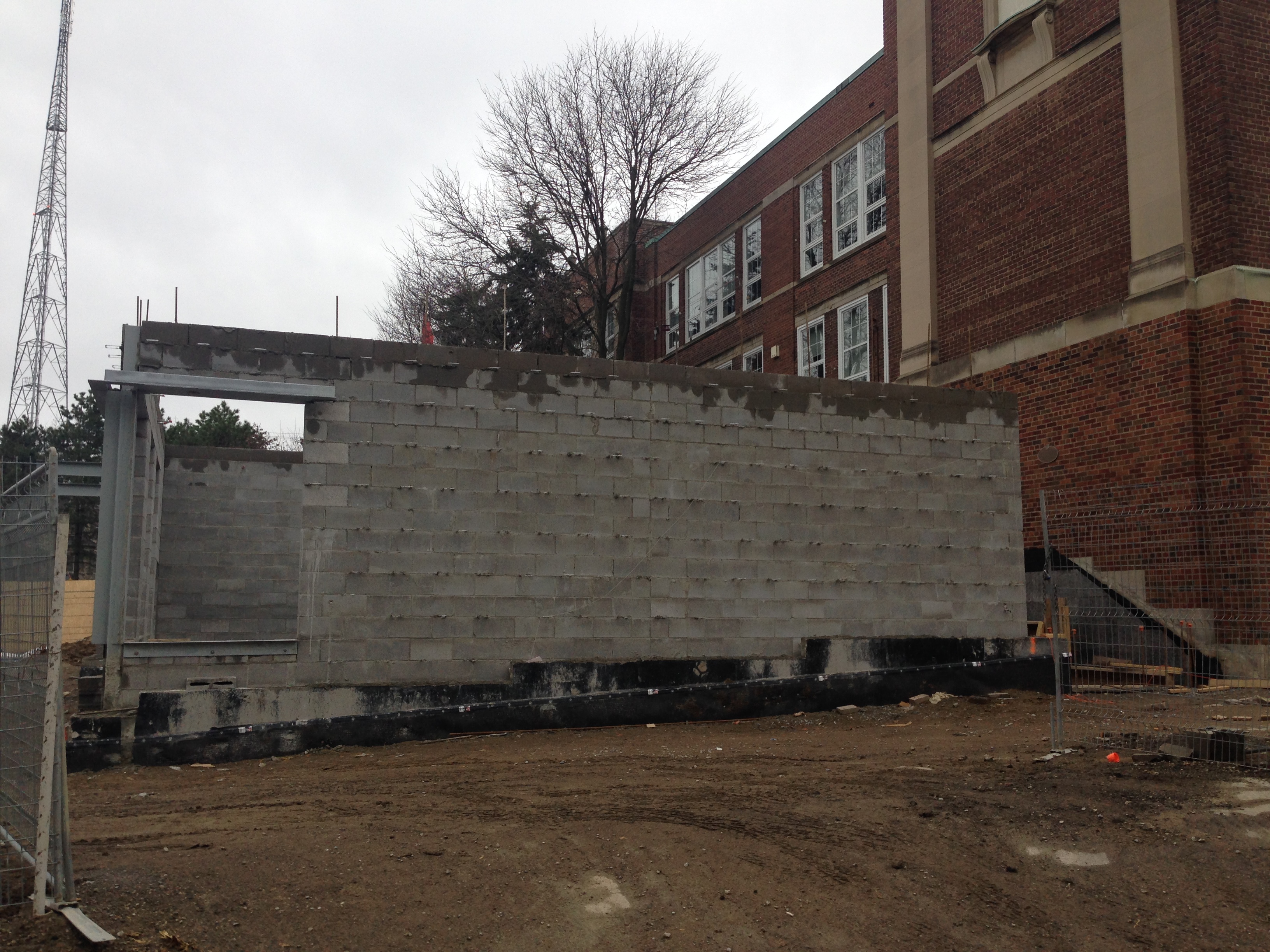 You might think that blue is one of Allenby’s school colours with all of the blue that is now visible within the construction area. The new walls on the south side are being prepared for back filling. That means that the hill of soil will be on the move soon – we hope! If blue isn’t one of our colours, do you know which ones are the Allenby school colours?