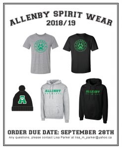 Get Your Spirit on, Allenby! By APA on September 28, 2018 in Fundraising Go to Amilia now to purchase your 2018/2019 Allenby Spiritwear before the end of the day today (September 28). Unfortunately, the APA will not be able to accept orders after this date, and the next ordering cycle will be next school year. spirit wear, spiritwear