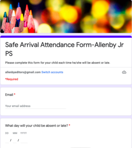 Safe Arrival Attendance Form